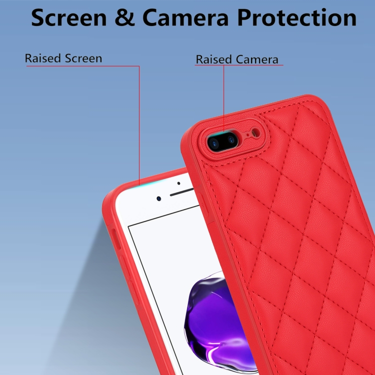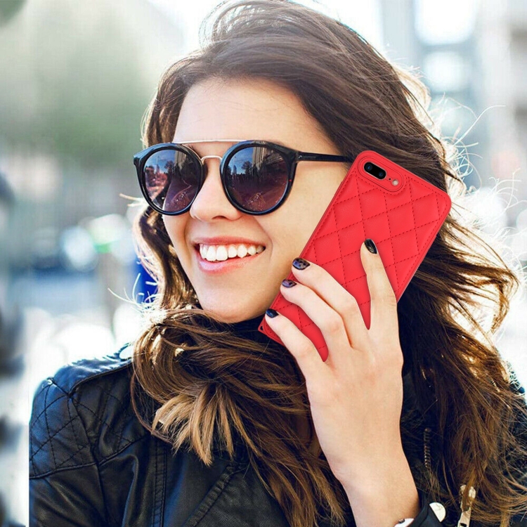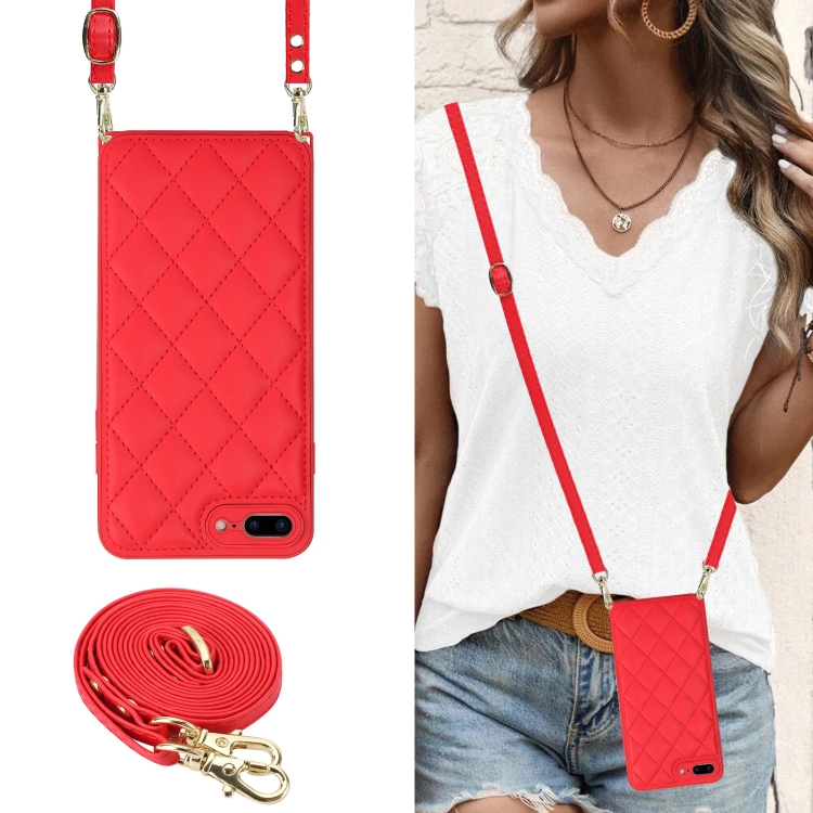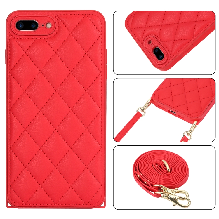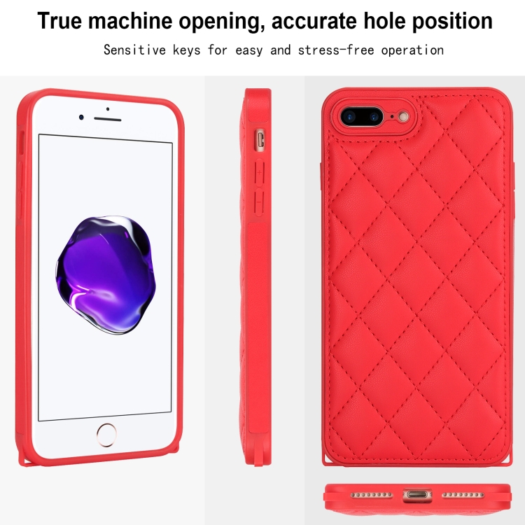 Funda para teléfono iPhone 8 Plus/7 Plus con textura rómbica y cordón doble (Rojo)