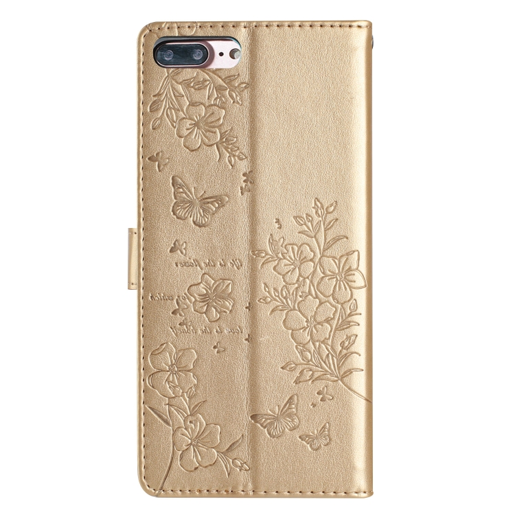 Funda para Teléfono iPhone 8 Plus 7 Plus Cuero Relieve Flor Amor y Mariposa (Dorado)