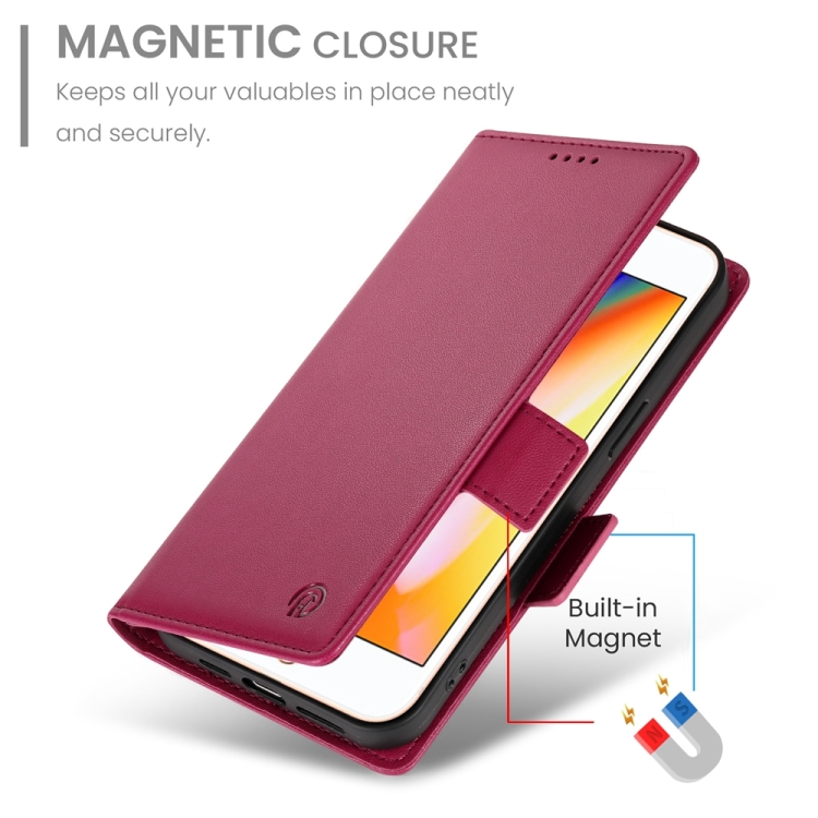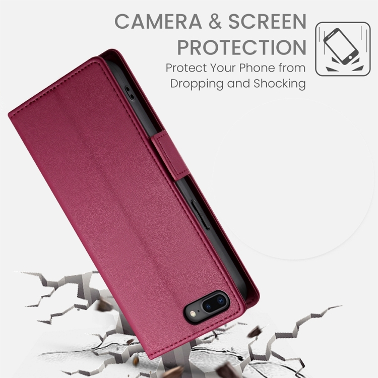 Funda para Teléfono iPhone 8 Plus 7 Plus Cuero Esmerilado Magnético Hebilla Lateral (Rojo Vino)