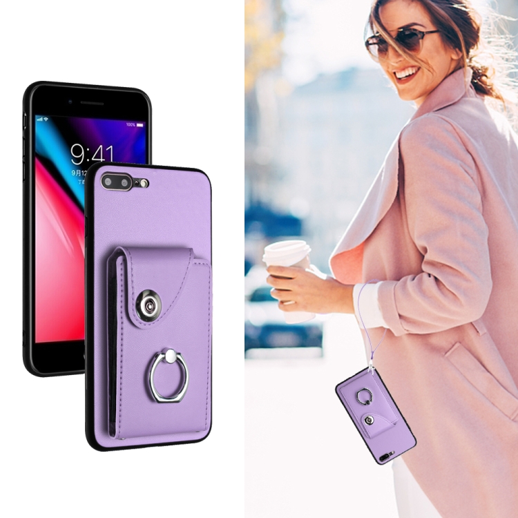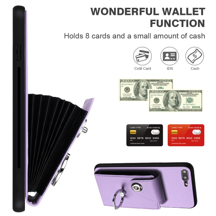 Funda para Teléfono iPhone 8 Plus/7 Plus de PU con Soporte para Anillo y Bolsa para Tarjeta con Cordón (Púrpura)