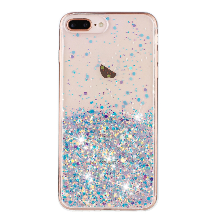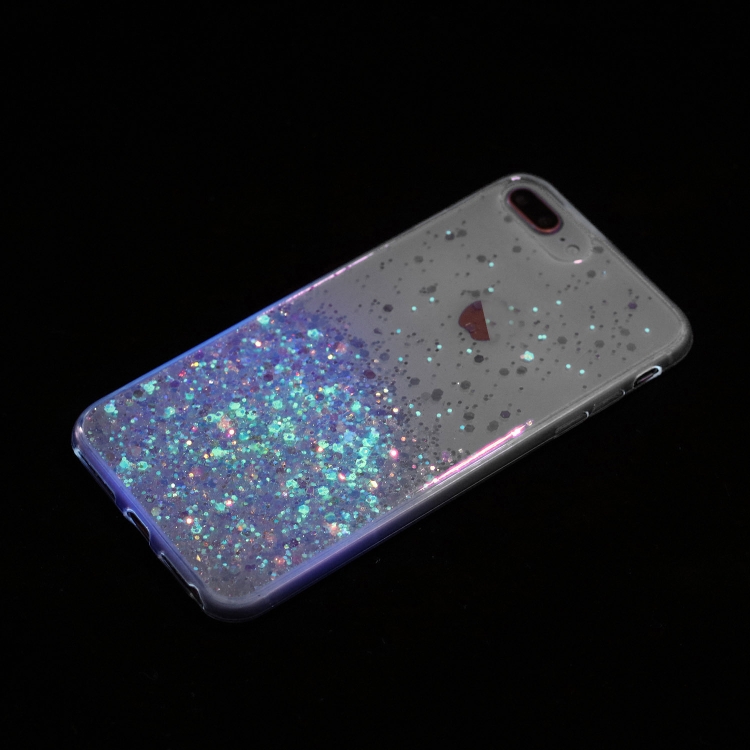 Funda para Teléfono TPU iPhone 8 Plus 7 Plus Polvo de Brillo Noctilucente Marco Transparente (Blanco)