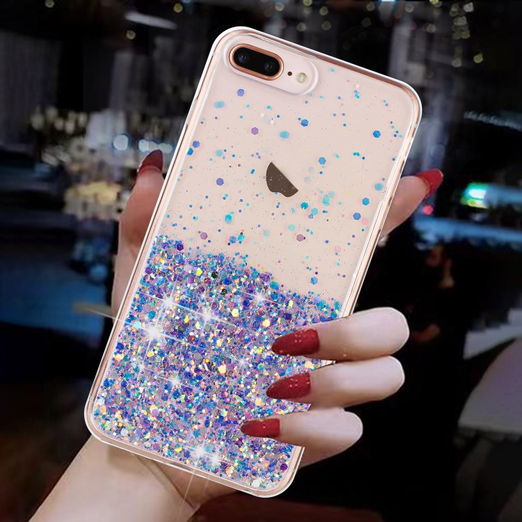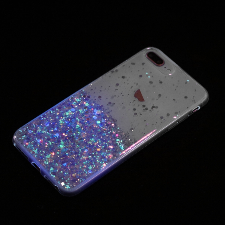 Funda para Teléfono TPU iPhone 8 Plus/7 Plus Polvo de Brillo Noctilucente Marco Transparente (Púrpura)