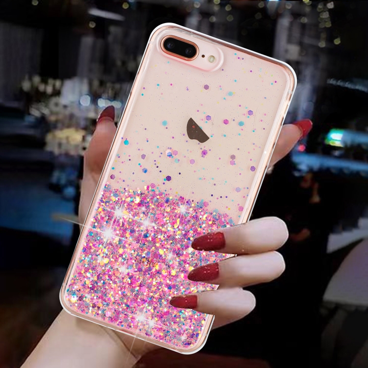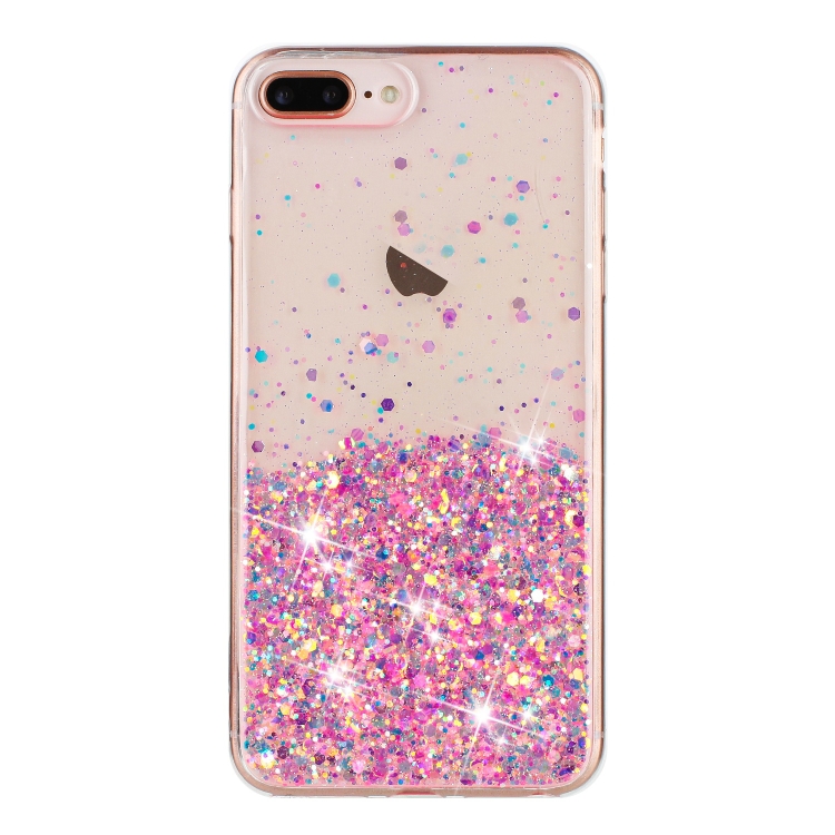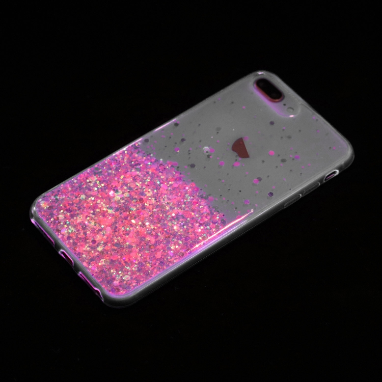 Funda para Teléfono TPU iPhone 8 Plus/7 Plus Polvo de Brillo Noctilucente Marco Transparente (Rosa)