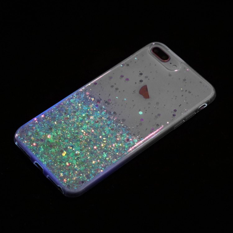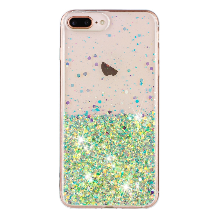 Funda para Teléfono iPhone 8 Plus/7 Plus TPU con Polvo de Brillo Noctilucente y Marco Transparente (Verde)