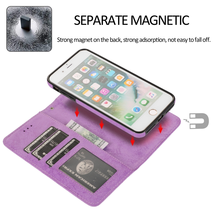 Estuche para iPhone 8 Plus 7 Plus Klt888-2 Retro 2 en 1 Cuero TPU PU Tapa Horizontal Magnética Soporte Ranuras Tarjetas Marco Fotos Billetera (Morado)