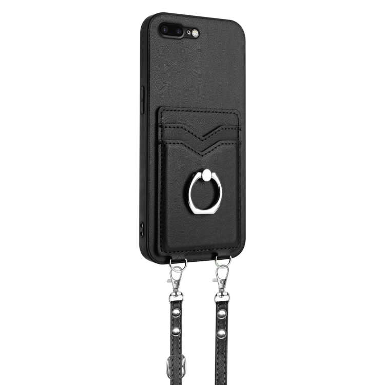 Funda para Teléfono iPhone 8 Plus/7 Plus R20 con Soporte para Tarjeta y Anillo Cruzado con Cuerda (Negro)