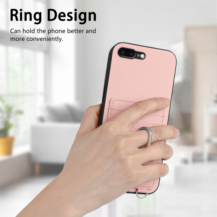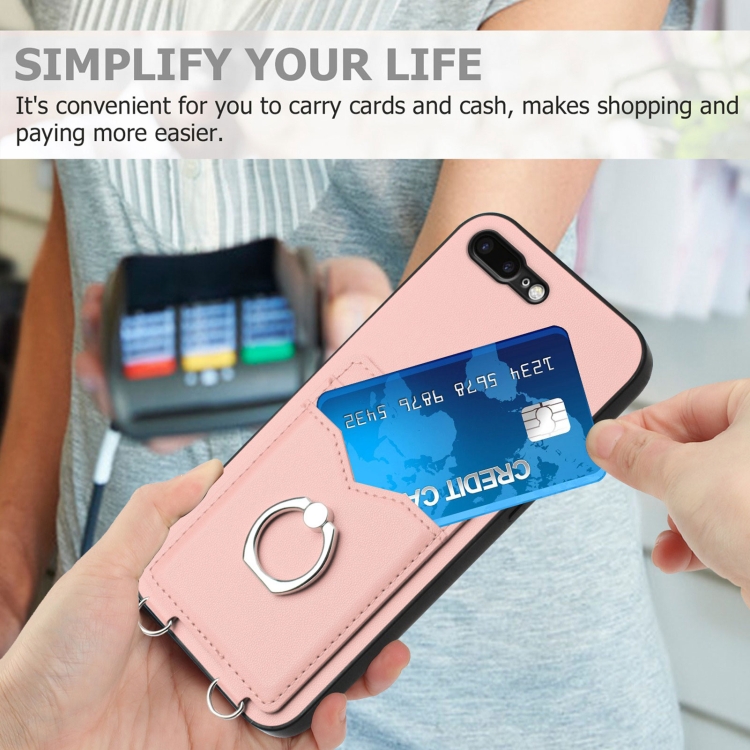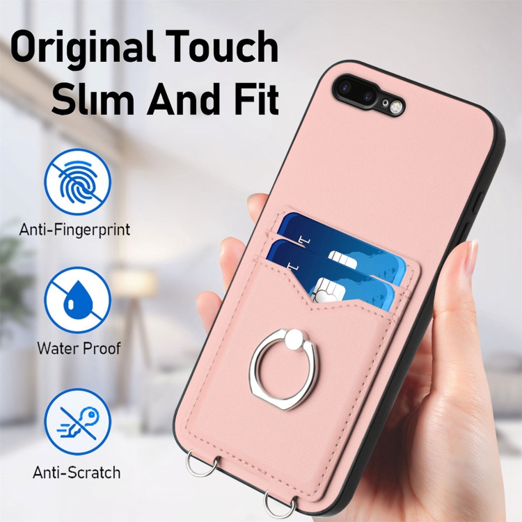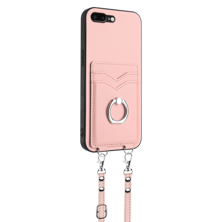 Funda para Teléfono iPhone 8 Plus/7 Plus R20 Soporte Tarjeta Anillo Cruzado con Cuerda (Rosa)