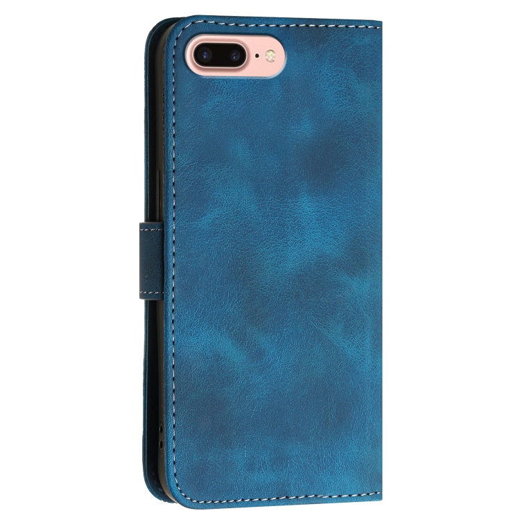 Funda de Cuero Yx0080 para iPhone 8 Plus y 7 Plus con Tapa y Cordón Diseño Mariposa y Cuadrícula (Azul Oscuro)