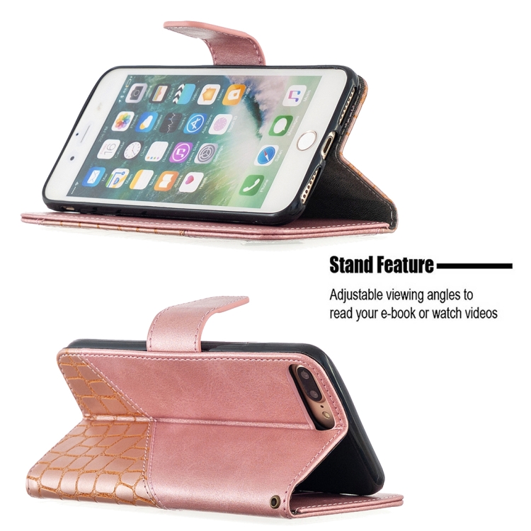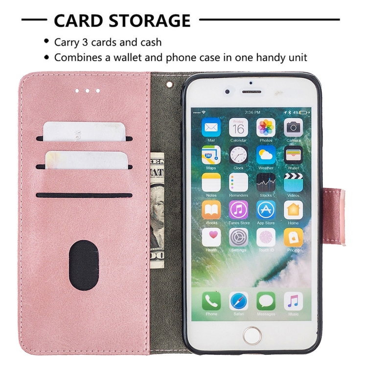 Funda de Cuero Pu para iPhone 8 Plus con Tapa Horizontal, Billetera, Soporte y Ranuras para Tarjetas (Oro Rosa)
