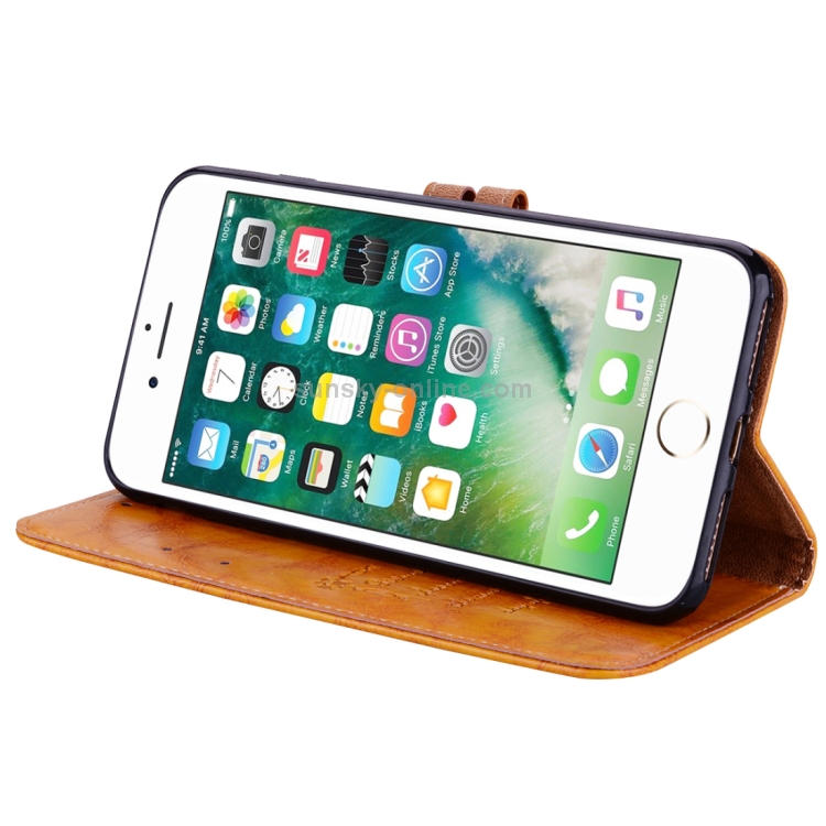 Funda de Cuero para iPhone 8 Plus y 7 Plus Business Style Oil Wax Texture con Tapa Horizontal, Soporte, Ranuras para Tarjetas y Billetera (Amarillo)