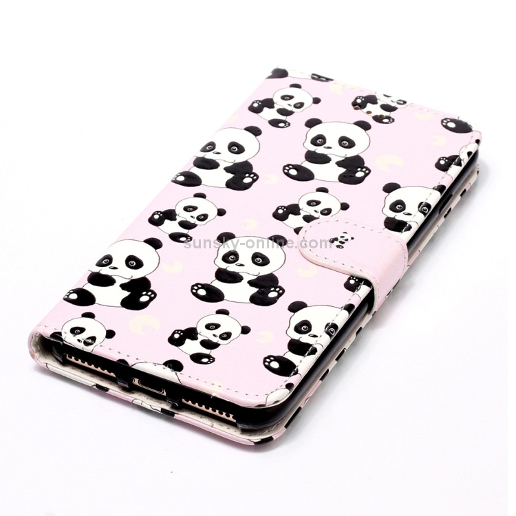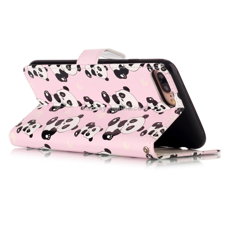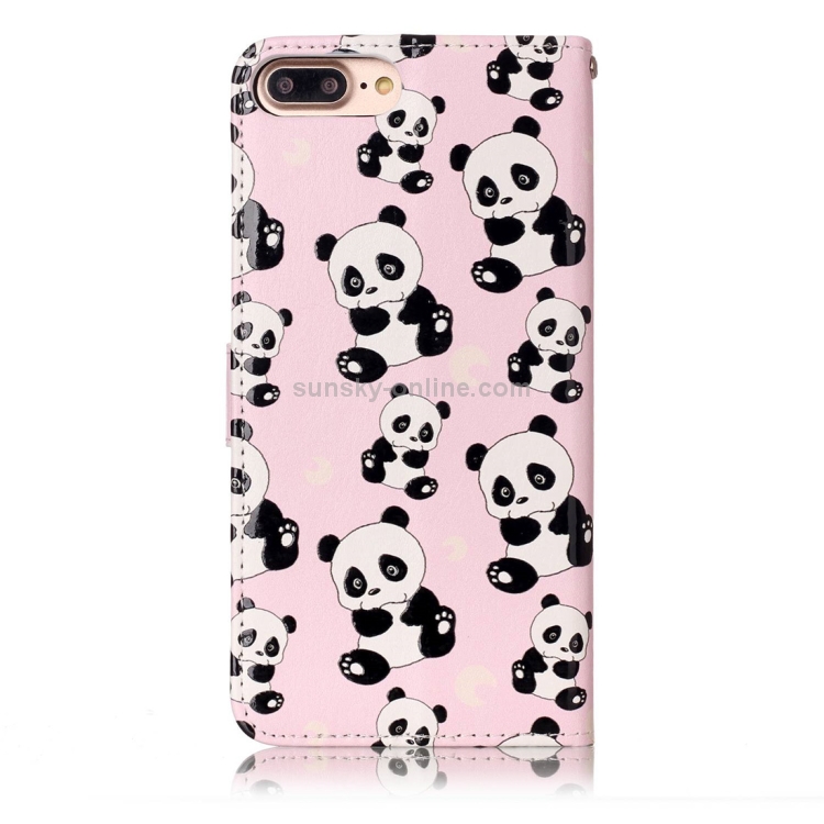 Funda de Cuero para iPhone 8 Plus y 7 Plus con Tapa Horizontal, Patrón Panda en Relieve, Soporte, Ranuras para Tarjetas, Billetera y Marco de Fotos