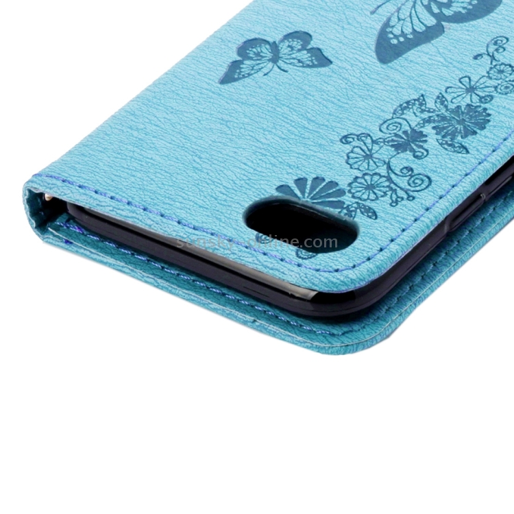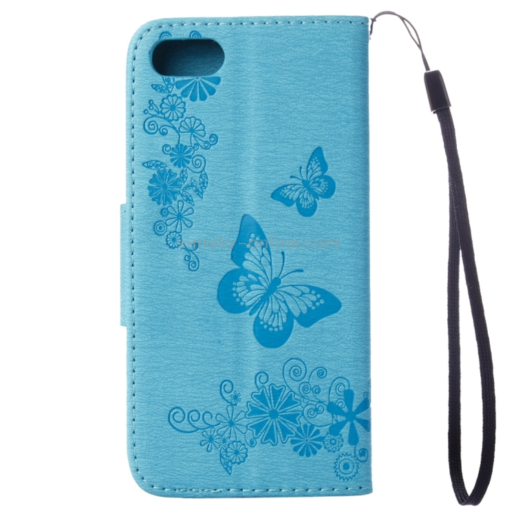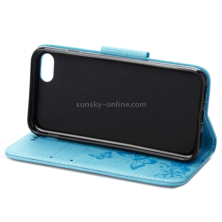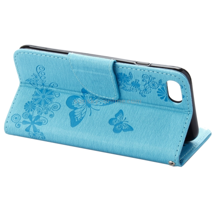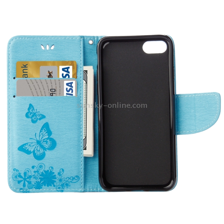 Funda de Cuero para iPhone 8 y 7 con Tapa Horizontal, Diseño de Mariposa y Flores Prensadas, Soporte, Ranuras para Tarjetas y Billetera