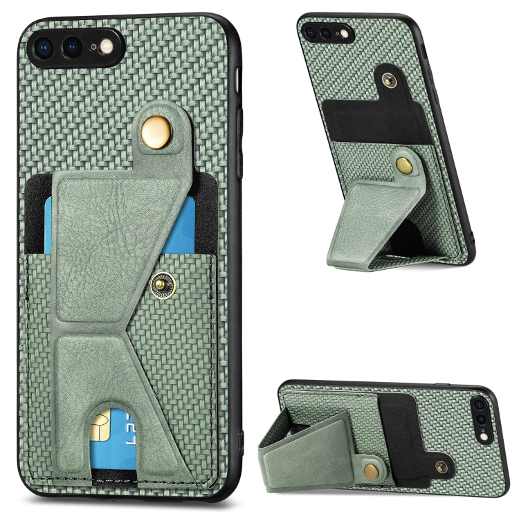 Funda de Teléfono para iPhone SE 2022/2020/7/8 con Soporte en Forma de K y Billetera de Fibra de Carbono (Verde)