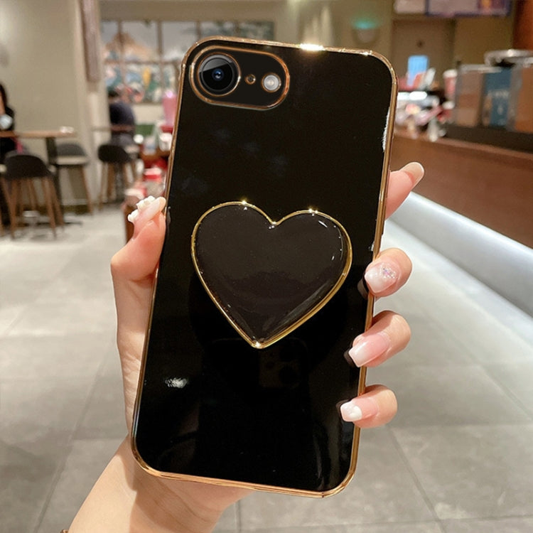 Funda para Teléfono TPU para iPhone SE 2022/2020/7/8 con Soporte Corazón de Amor Galvanoplastia (Negro)
