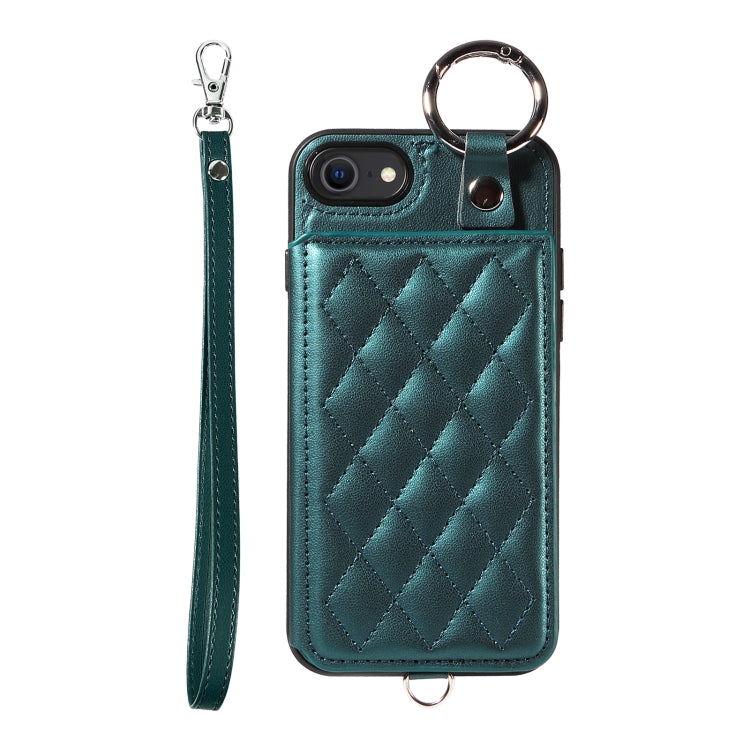 Funda para Teléfono iPhone SE 2022/2020/8/7 con Bolsa para Tarjetas Textura Rómbica y Cordón Corto (Verde)