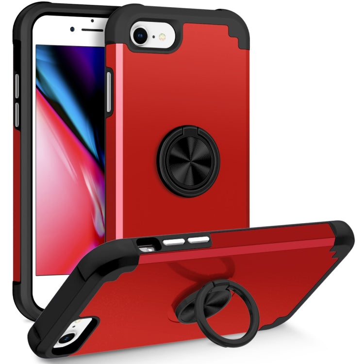 Funda Magnética para Teléfono L2 para iPhone SE 2022/2020/8/7 con Soporte de Anillo Giratorio (Rojo)