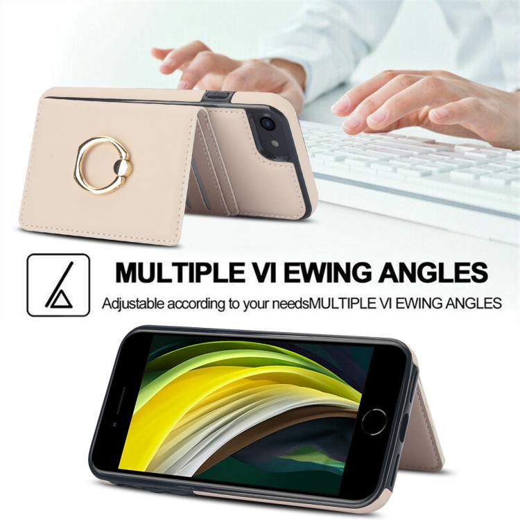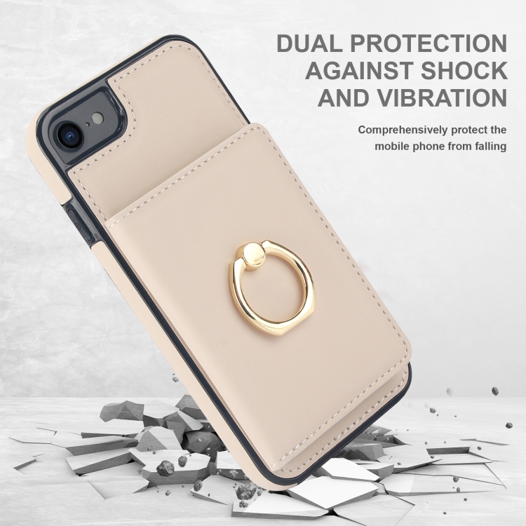 Estuche para Teléfono iPhone SE 2022/SE 2020/6/7/8 con Soporte Anillo Tarjeta Antirrobo RFID (Blanco)