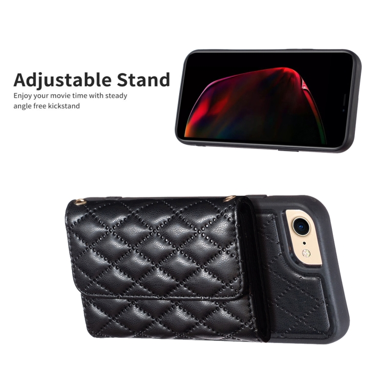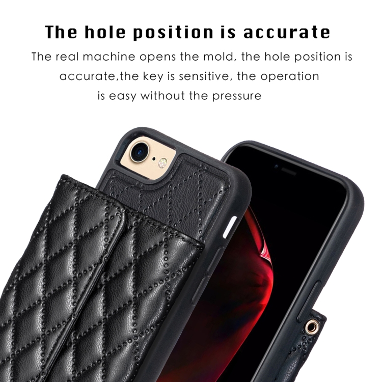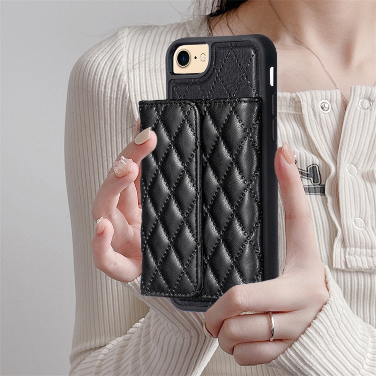 Estuche de teléfono iPhone SE 2022 SE 2020 7 8 cuero Rómbico con billetera horizontal (Negro)