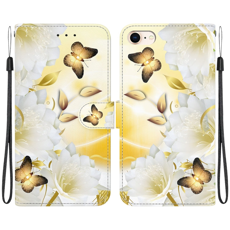 Funda para Teléfono iPhone Se 2022/Se 2020 Cuero Dibujo Coloreado Textura Cristal (Epiphyllum Mariposa Dorada)