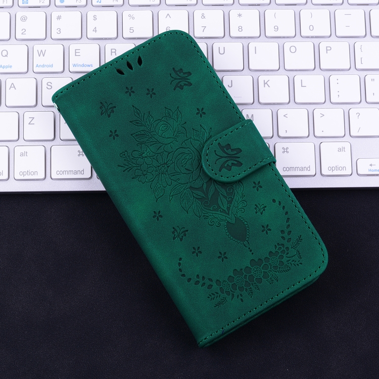 Funda de Cuero con Relieve de Mariposa y Rosa para iPhone 16E (Verde)
