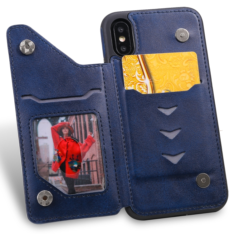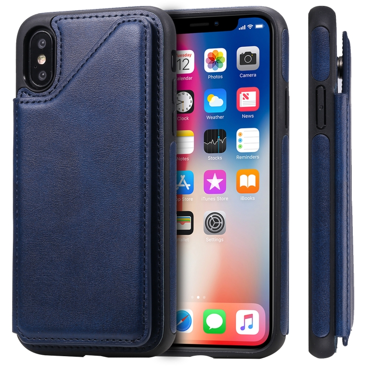 Estuche Protector para iPhone X Textura de Pantorrilla a Prueba de Golpes con Soporte y Ranuras para Tarjetas (Azul)