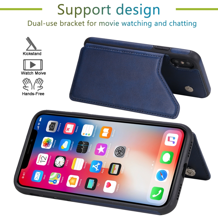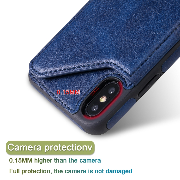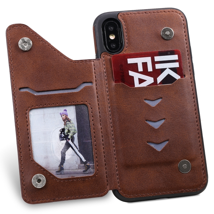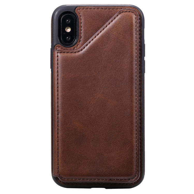 Estuche Protector para iPhone X Textura de Pantorrilla a Prueba de Golpes con Soporte y Ranuras para Tarjetas (Café)