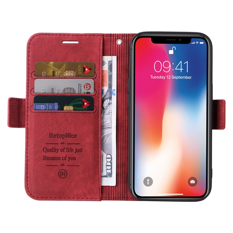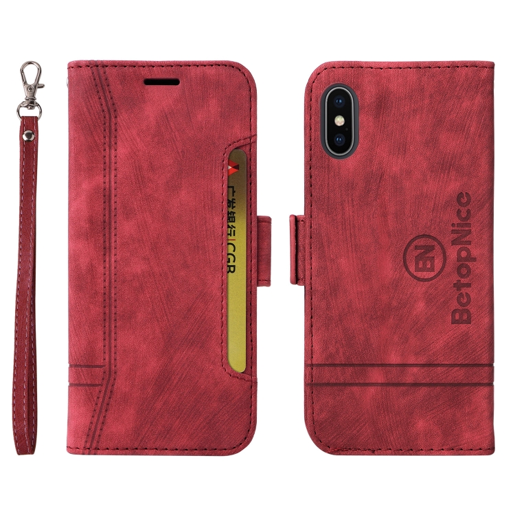 Estuche para Teléfono Betopnice iPhone X / Xs Cuero con Hebilla de Doble Cara (Rojo)