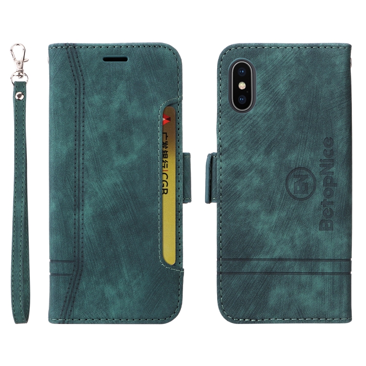 Estuche para Teléfono Betopnice iPhone X Xs Cuero Hebilla Doble Cara (Verde)