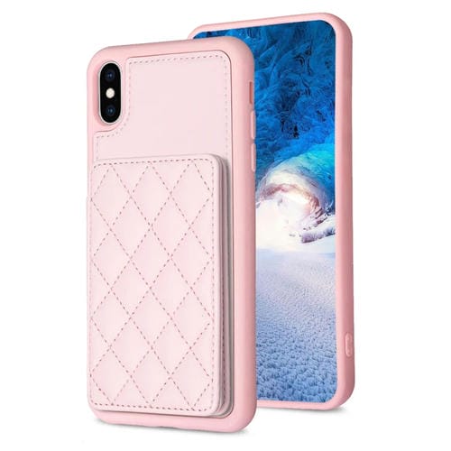 Funda para Teléfono Bf25 Square Plaid Card Bag Holder para iPhone X y Xs (Rosa)