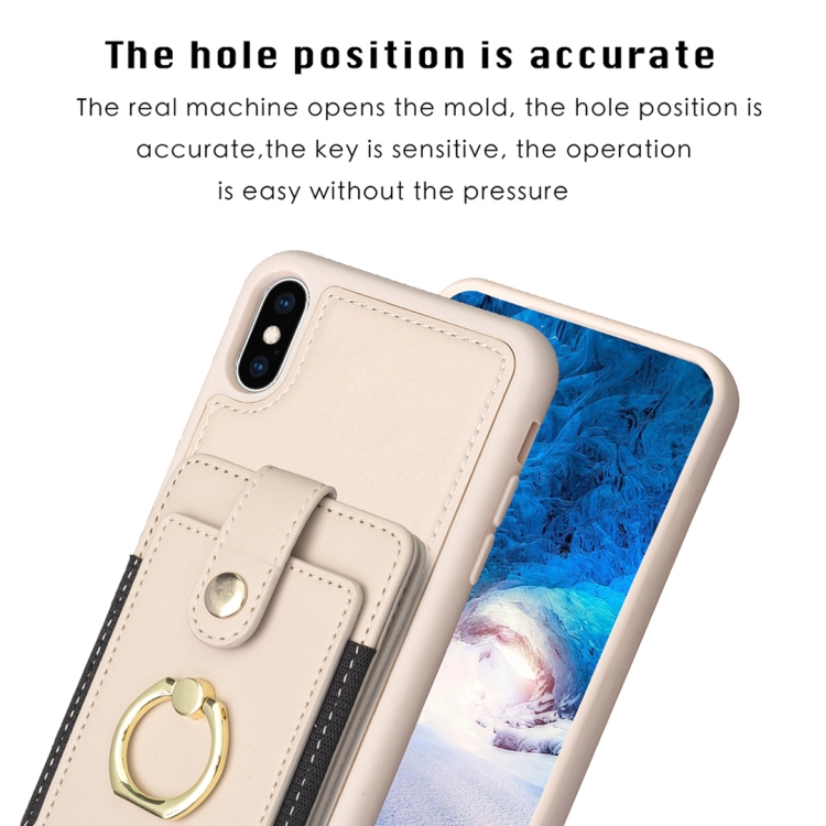 Caja de teléfono para iPhone X Xs Bf27 con soporte para tarjeta y anillo de metal (Beige)
