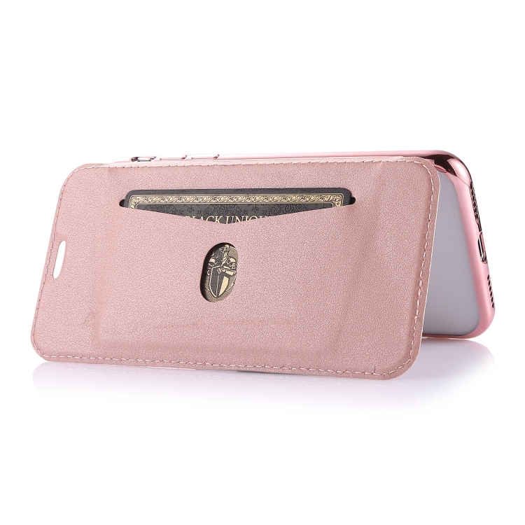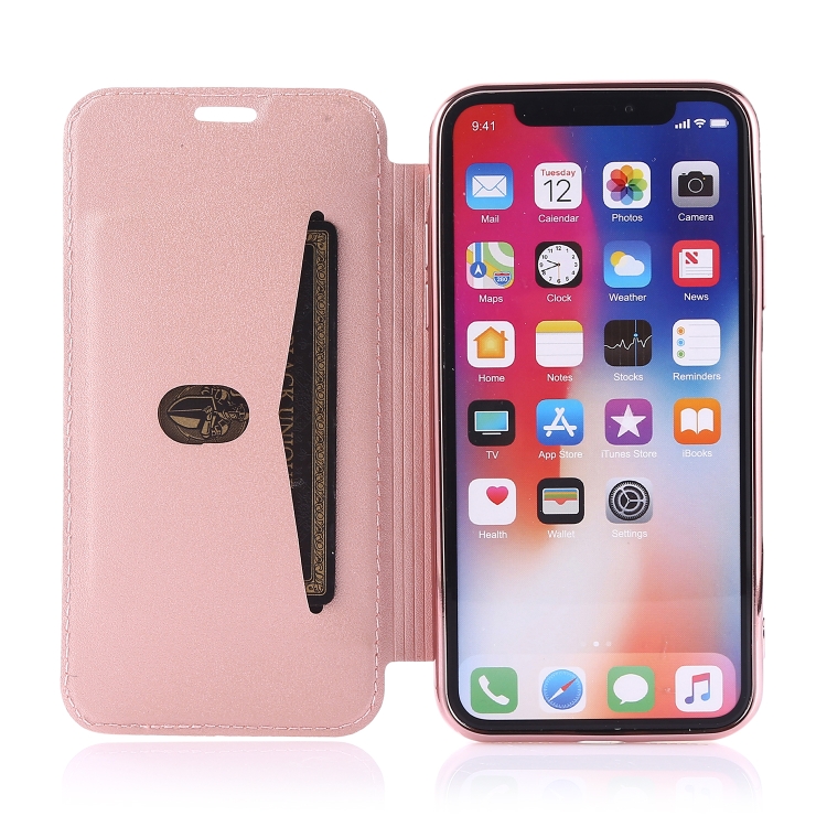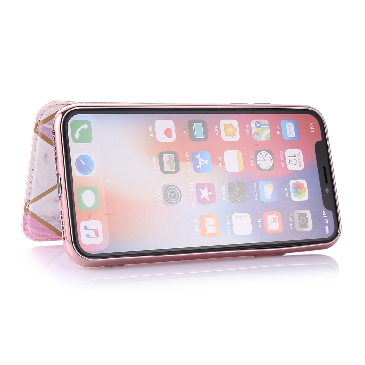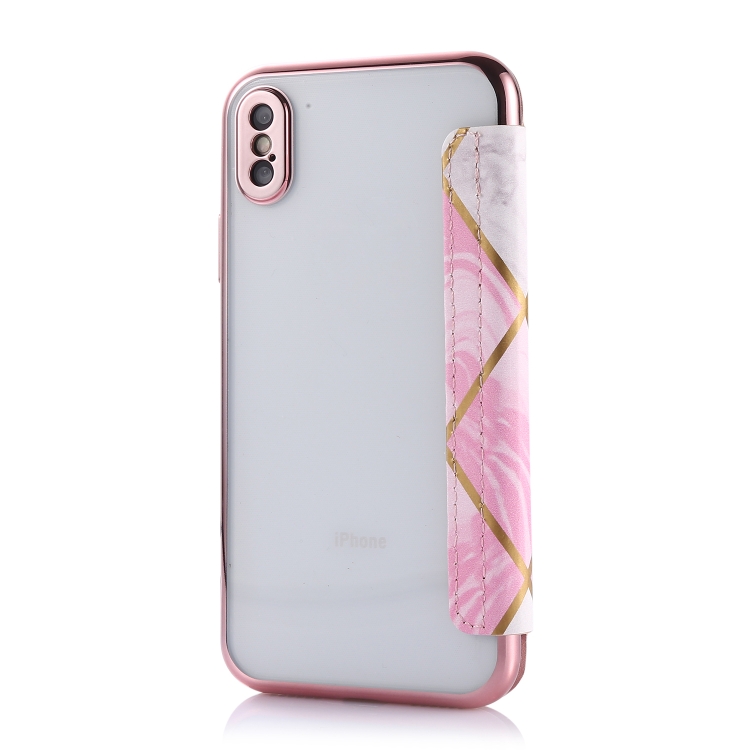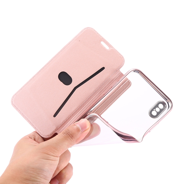 Estuche de Cuero para iPhone X / Xs Bronceado Pu + TPU con Tapa Horizontal, Soporte y Ranura para Tarjeta (Rosa Blanco)
