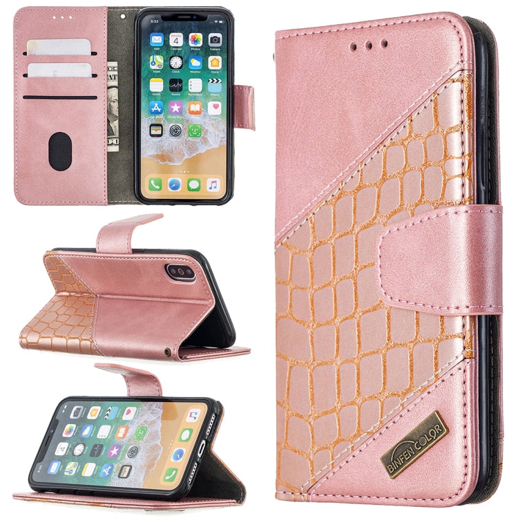 Funda de Cuero de Pu para iPhone X Xs con Tapa Horizontal Billetera Soporte y Ranuras para Tarjetas (Oro Rosa)