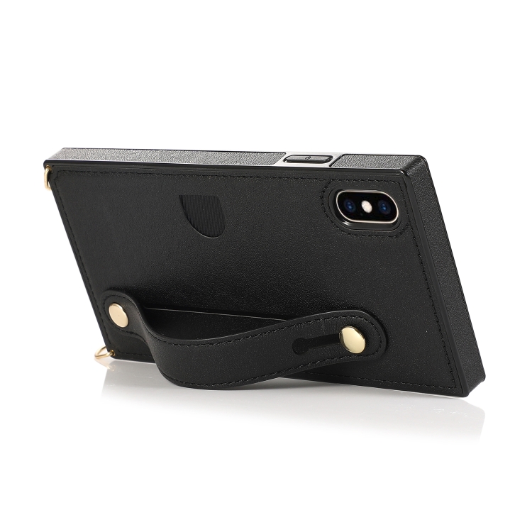Correa para Muñeca + Estuche TPU para iPhone X / Xs a Prueba de Golpes con Soporte y Ranura para Tarjeta (Negro)