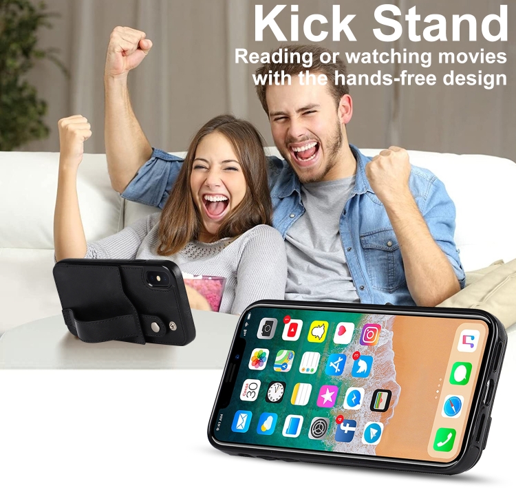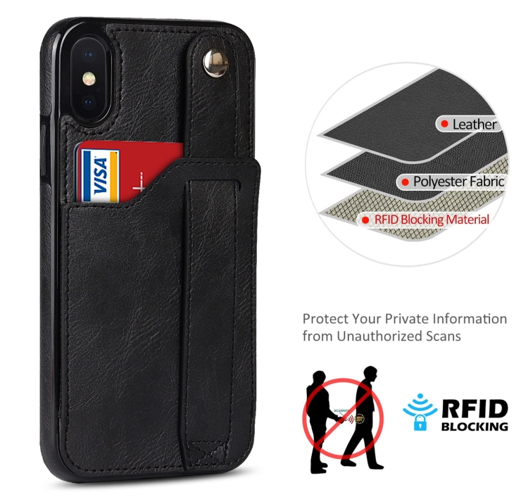Funda para iPhone X / Xs Crazy Horse Texture Cuero TPU + PU a Prueba de Golpes con Ranura para Tarjeta y Correa para la Muñeca (Negro)
