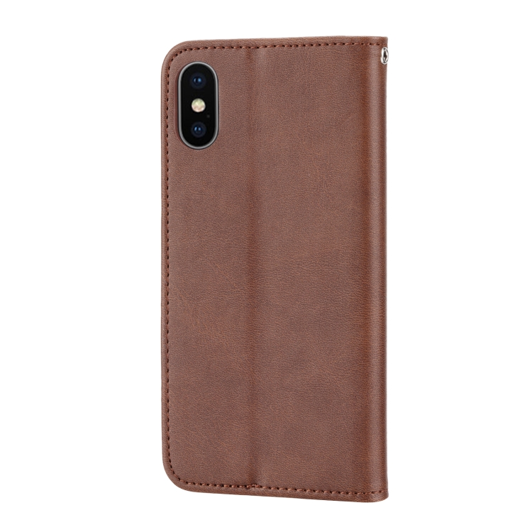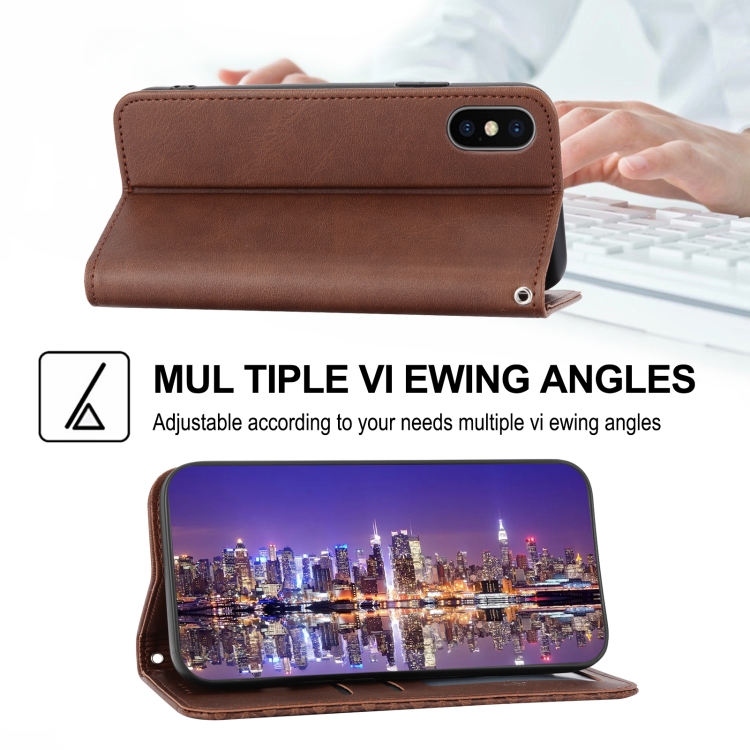 Funda para iPhone X / Xs Cubic Grid Cuero Becerro Cierre Magnético (Marrón)