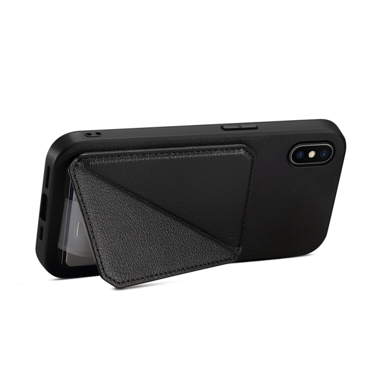 Funda para Teléfono iPhone X / Xs D04 con Soporte y Ranura para Tarjeta Dual (Negro)