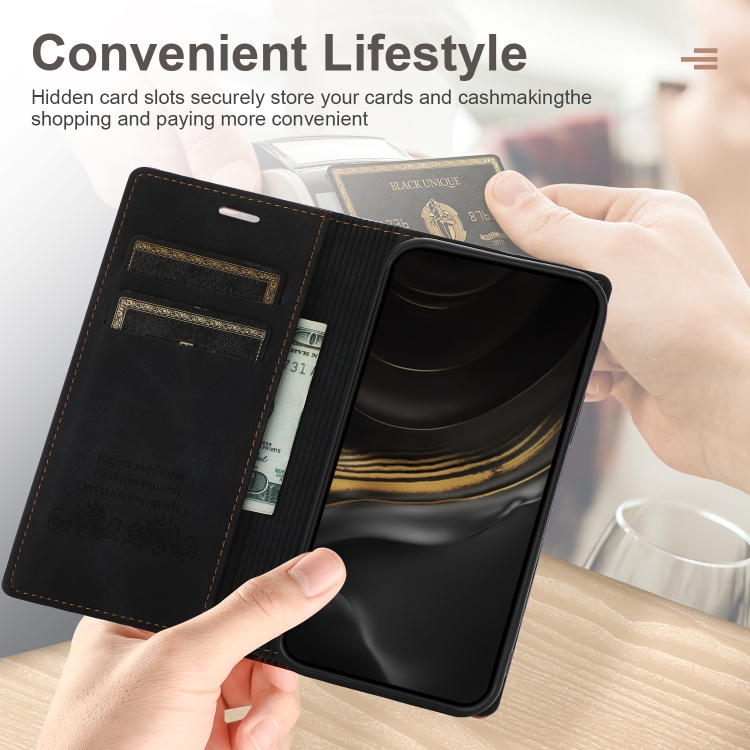 Funda para iPhone X Xs Dream Magnetic Suction Cuero de Pu Tapa Horizontal Soporte Ranura Tarjeta Billetera (Negro)