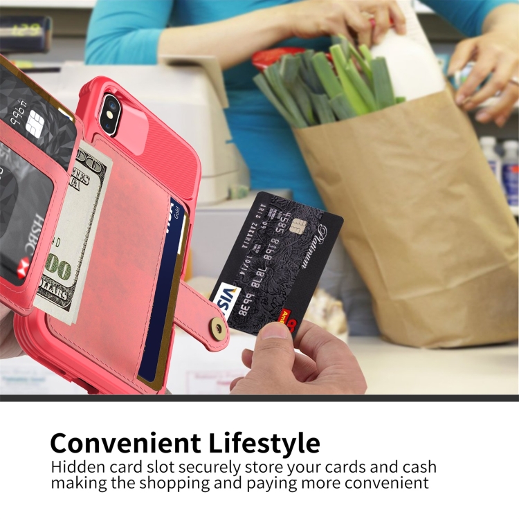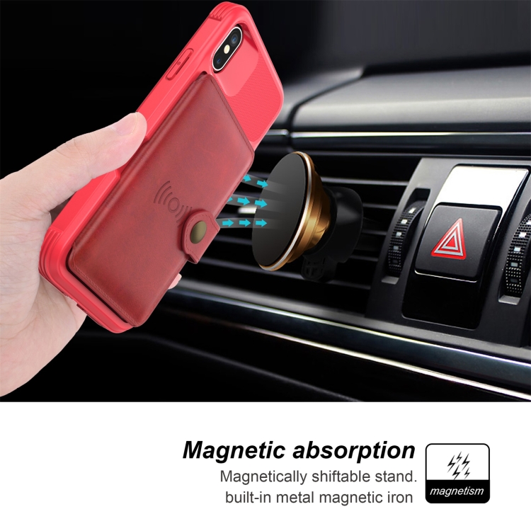 Estuche de Cuero para iPhone X Xs con Bolsa de Tarjeta Billetera Magnética (Rojo)
