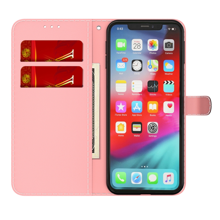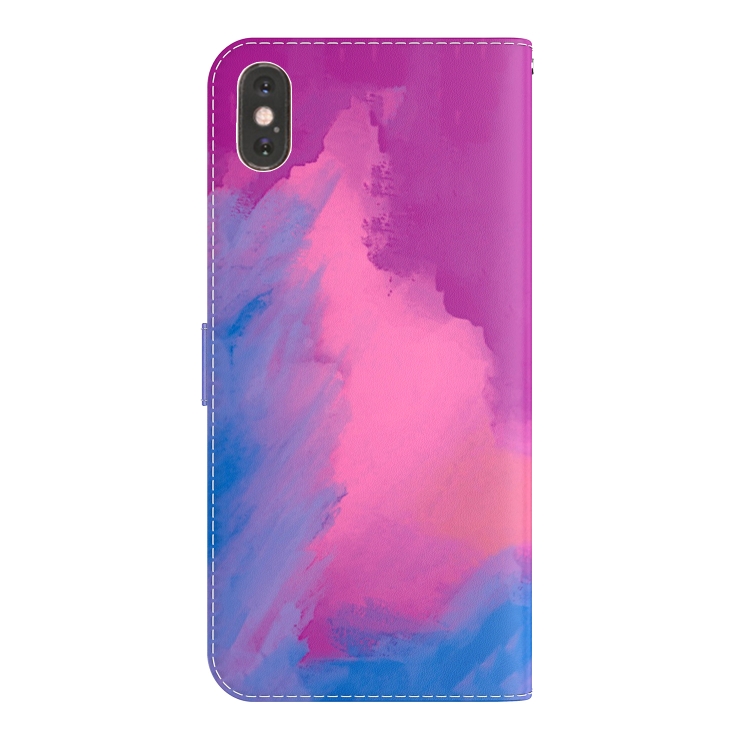 Estuche de Cuero para iPhone X Xs con Tapa Horizontal Patrón Acuarela Soporte Ranura Tarjeta Billetera (Rojo Púrpura)