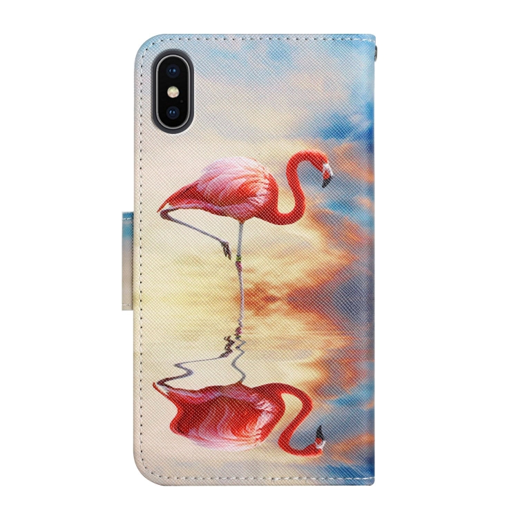 Estuche de Cuero iPhone X Xs Tapa Horizontal Soporte Ranura Tarjeta Billetera (Flamingo)