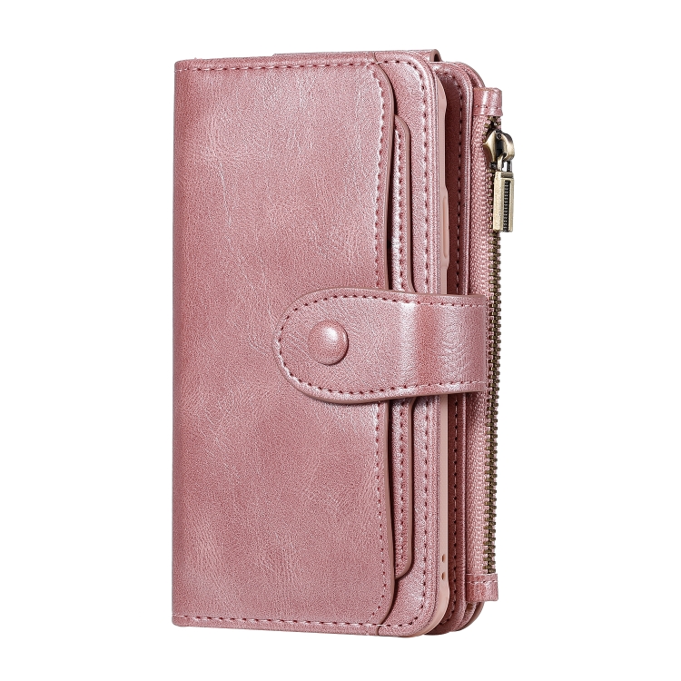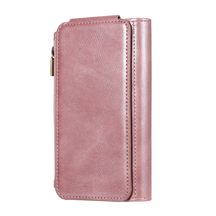 Estuche para iPhone X Xs de Cuero con Tapa Horizontal Magnética Desmontable Multifuncional (Oro Rosa)