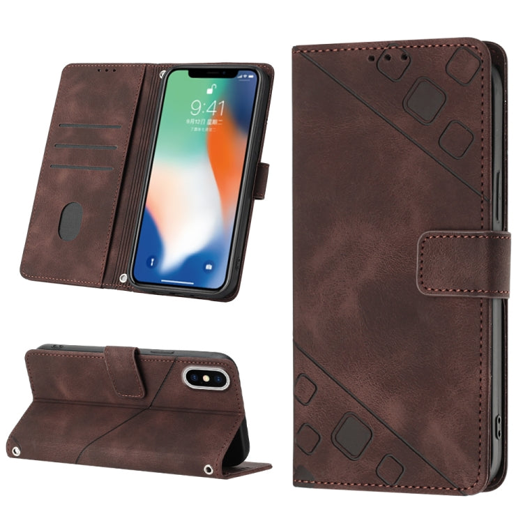 Estuche para Teléfono iPhone X Xs Cuero En Relieve con Tacto de Piel (Marrón)