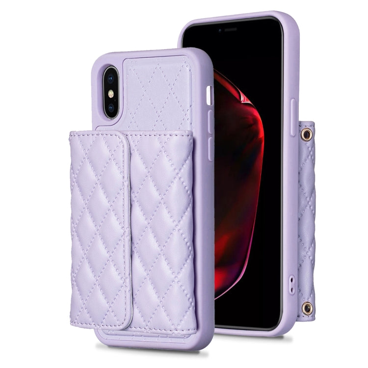 Estuche para Teléfono iPhone X Xs Cuero Rómbico con Billetera Horizontal (Púrpura)