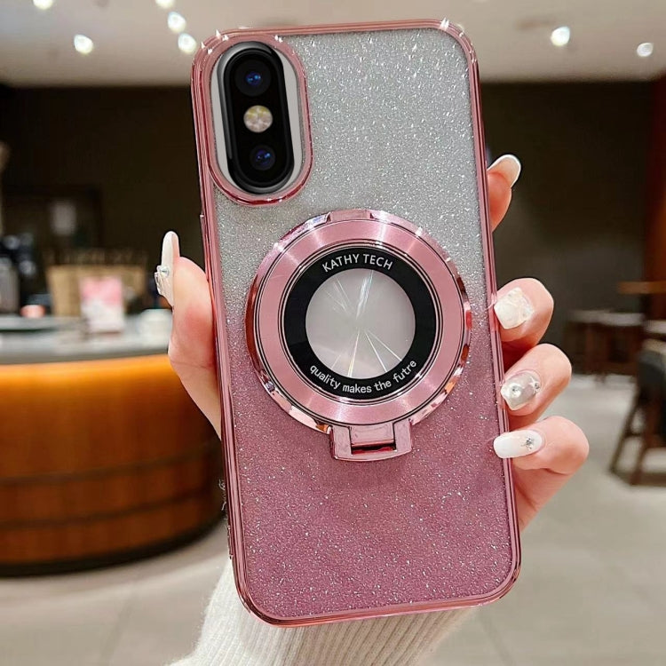 Estuche para Teléfono Magsafe para iPhone X / Xs con Brillo Degradado y Soporte Galvanizado (Rosa)