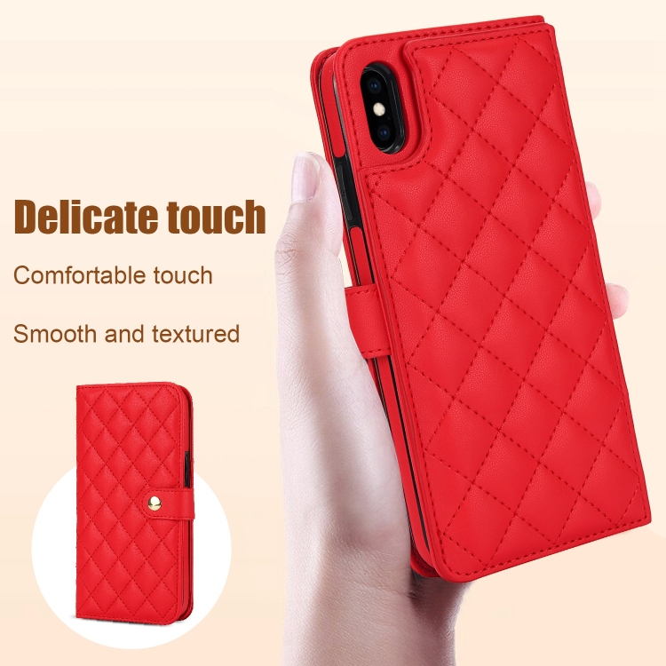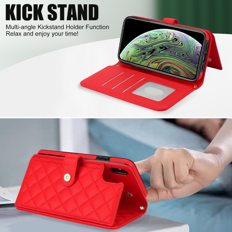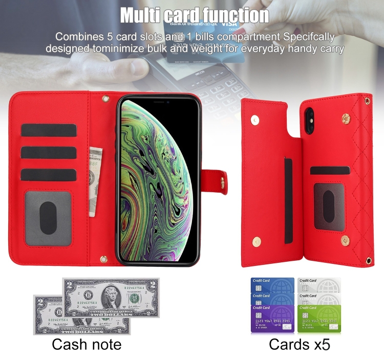 Funda Cruzada de Cuero Rómbico para iPhone X Xs Multifunción (Rojo)