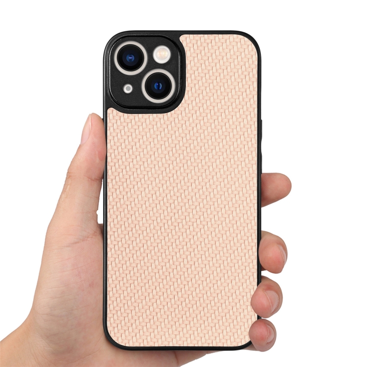 Funda de teléfono para iPhone X / Xs con tapa Trasera de cuero y textura de fibra de carbono (Caqui)