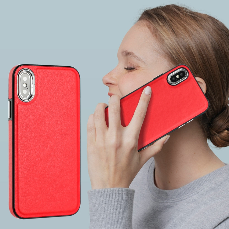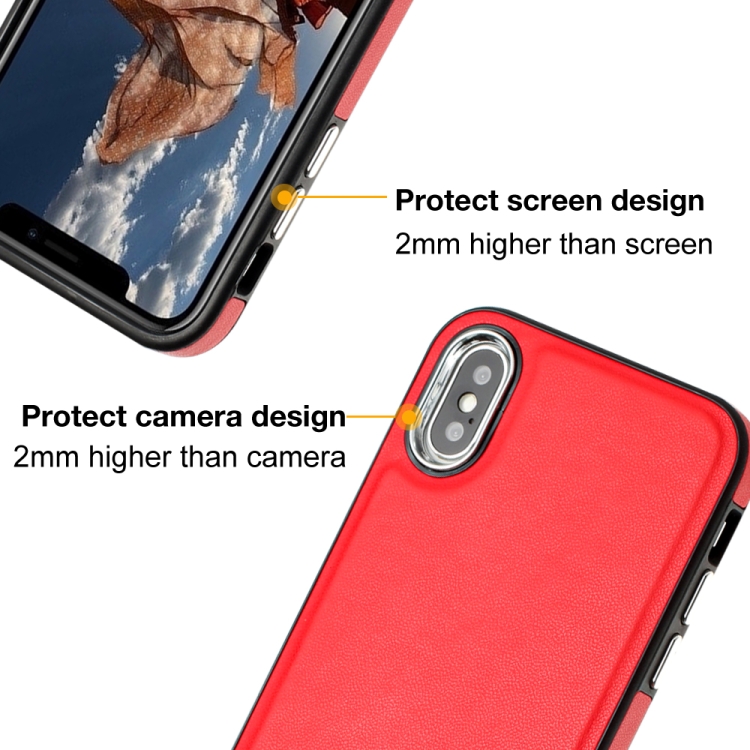Funda de Teléfono para iPhone X Xs Cobertura Completa Textura de Cuero (Rojo)