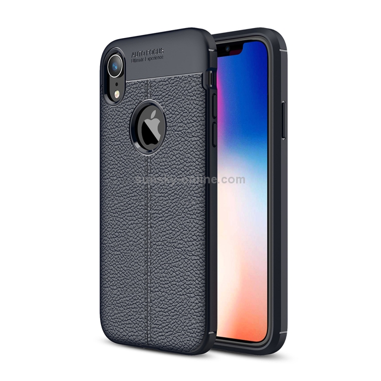 Funda TPU para iPhone X / Xs con Textura Litchi (Azul Marino)
