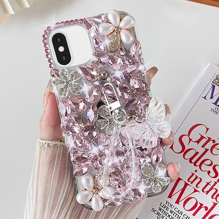 Funda para iPhone X / Xs Hecha a Mano con Incrustaciones de Diamantes y Mariposas (Rosa)