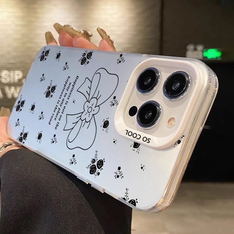 Funda híbrida para iPhone X Xs TPU pintura plateada PC lazo floral blanco